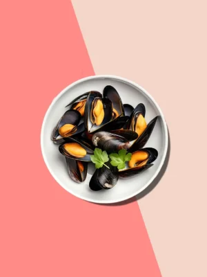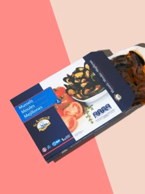 Мидии в белом винном соусе, в раковинах, варено-мороженые, 500 гр.